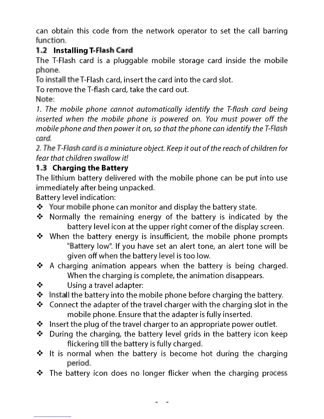 Sunstech CELT21 - 1.2 Installing the T-Flash Card; 1.3 Charging the Battery