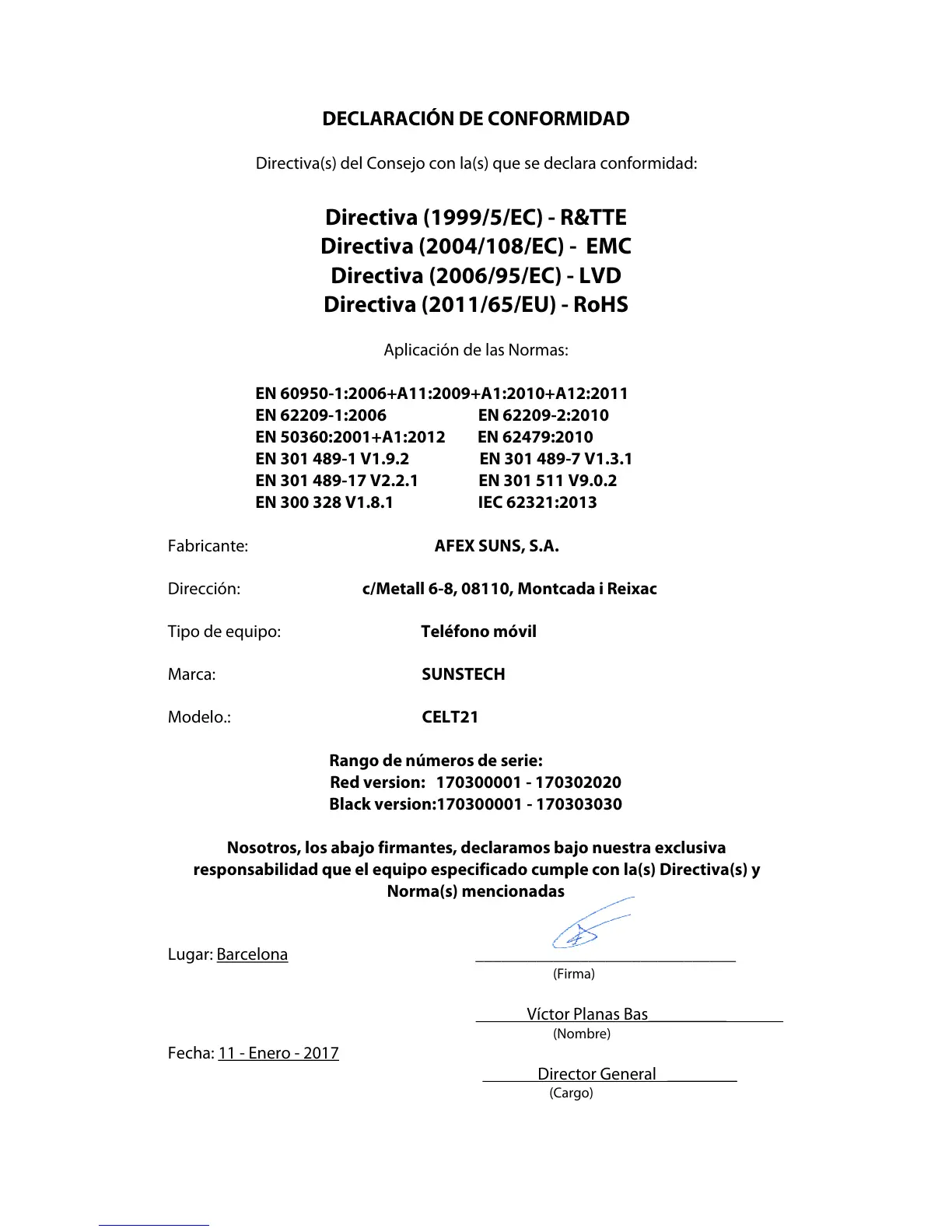 Fabricante: AFEX SUNS, S.A.