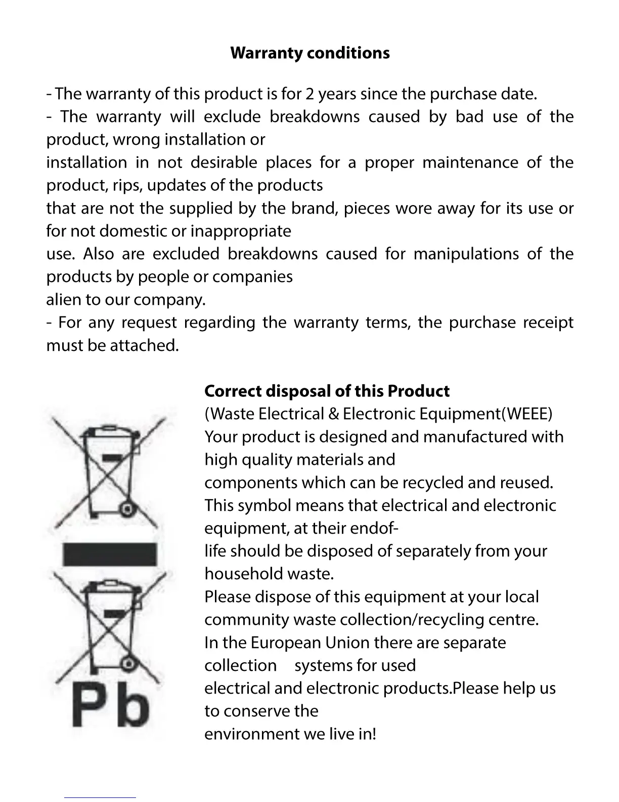 Sunstech DEDALO2BT - Warranty and Compliance; Warranty Conditions; Correct Product Disposal