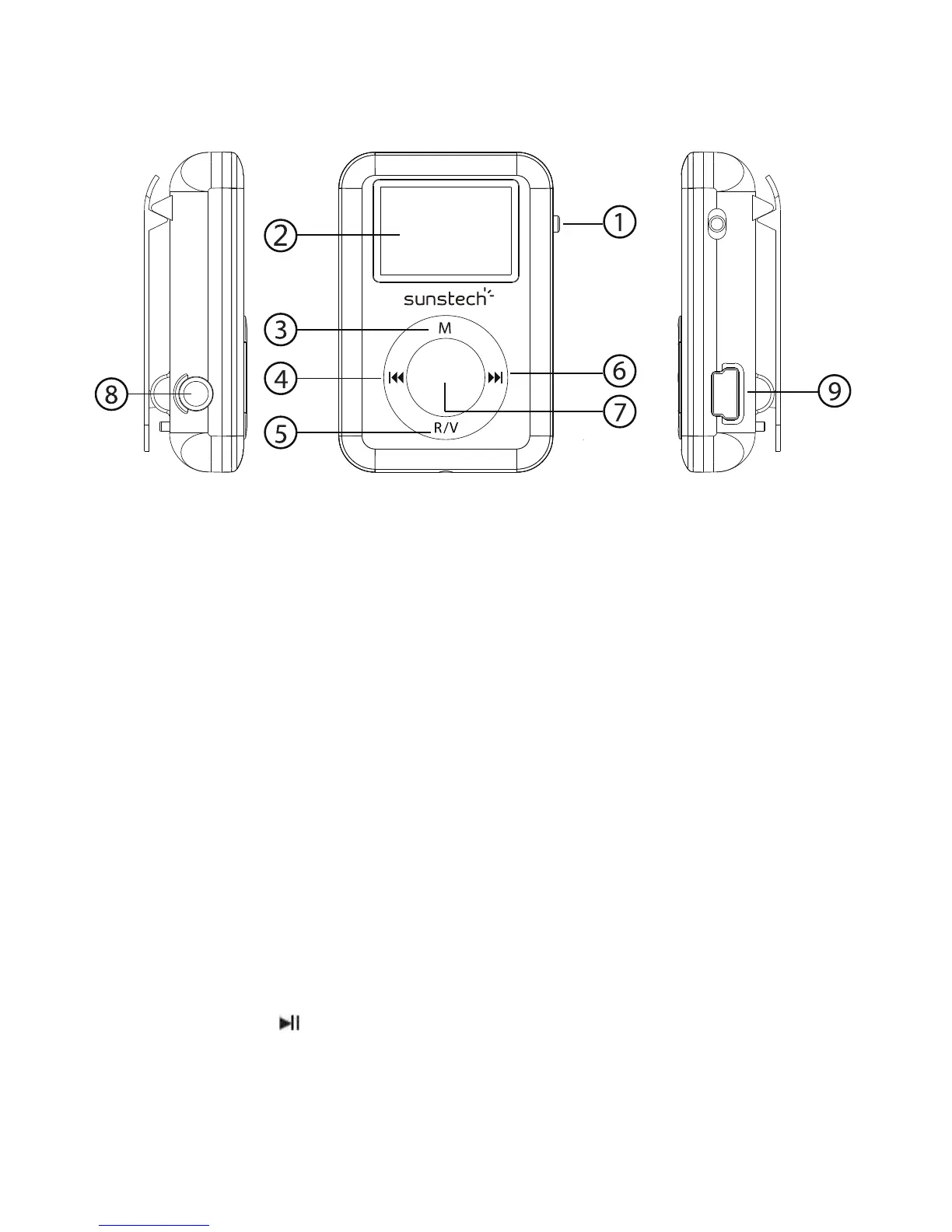 7. “PLAY [LECTURE]” : Appui court pour lire / pauser / accéder, appui long pour