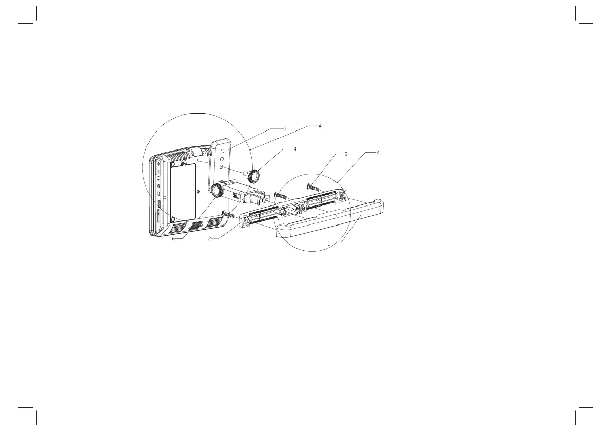 3.Fije la Parte 5 en la parte trasera de la unidad con la Parte 4, el ángulo puede modificarse ajustando la Parte 6