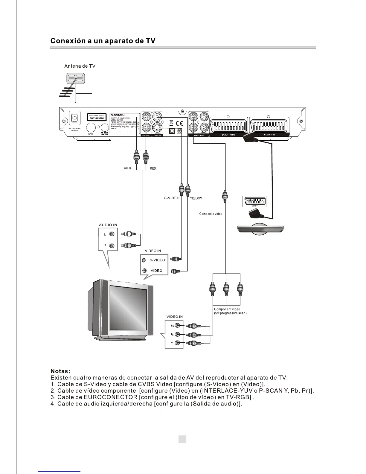 Sunstech DX-T700 - Connecting the Player; Connecting to a TV Set