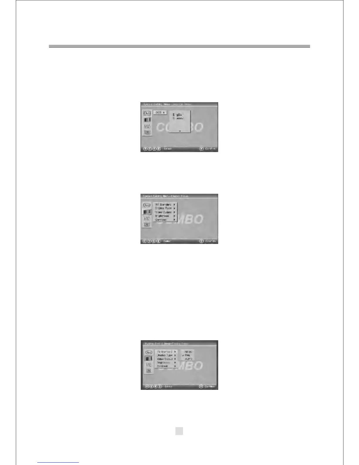 In the System Setting Menu-Display Setup ,you can setup the TV Standard, Display