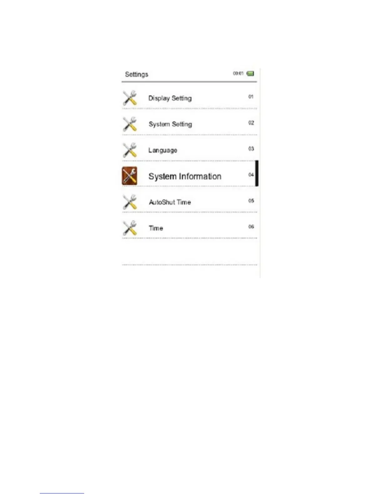 Informations système: Appuyer brièvement sur la touche M pour voir les informations