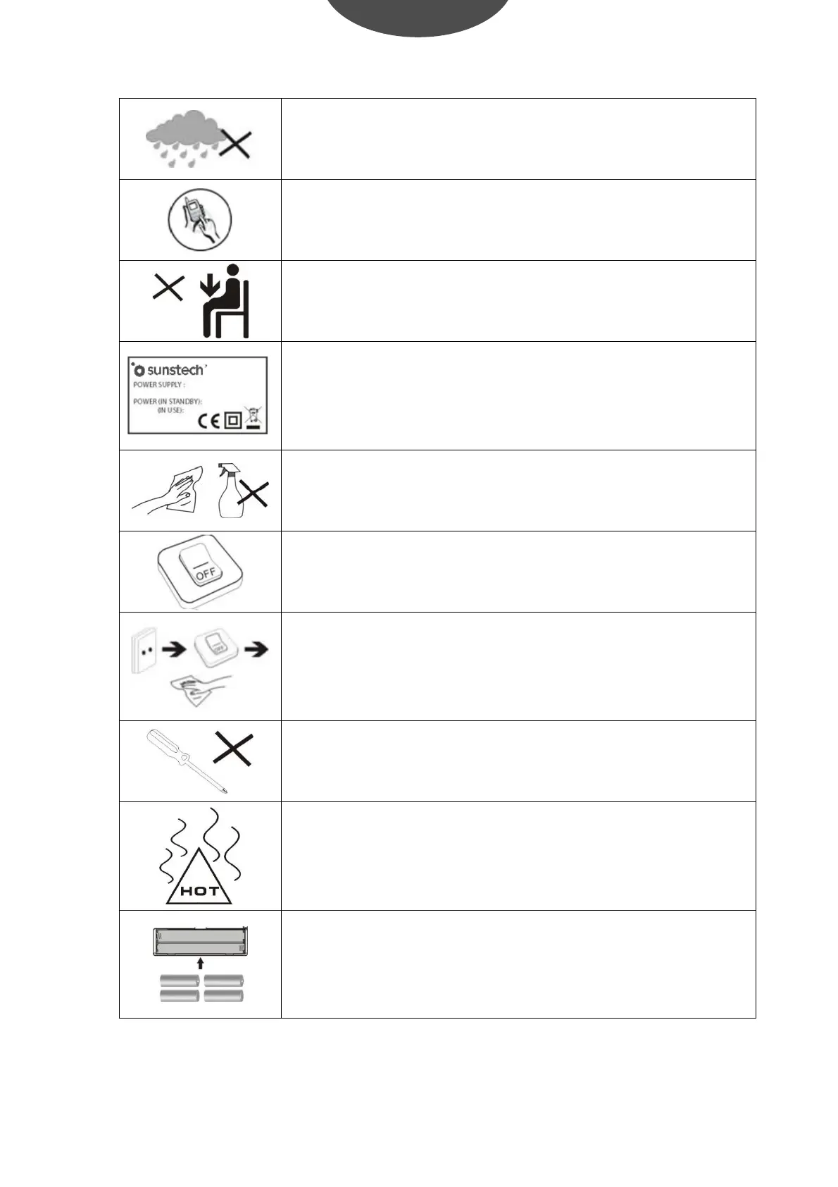 DO NOT use the device in the rain.