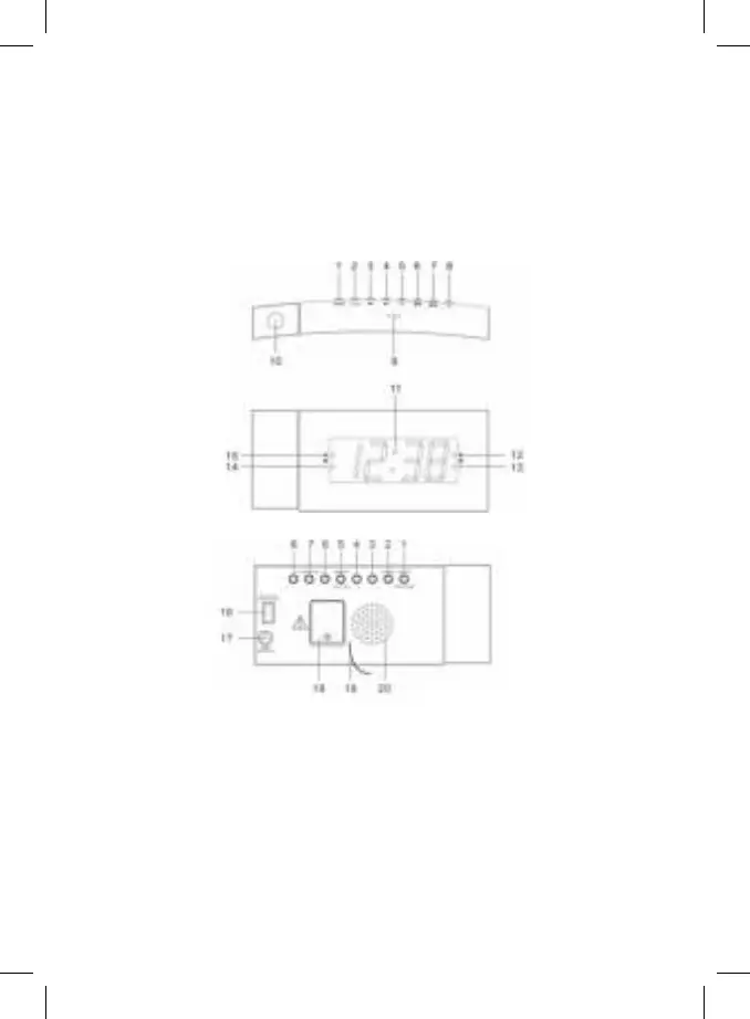 6. Bouton de RÉVEIL 1 / Bouton de BAISSE DE VOL / Bouton d’ARRÊT DE RÉVEIL