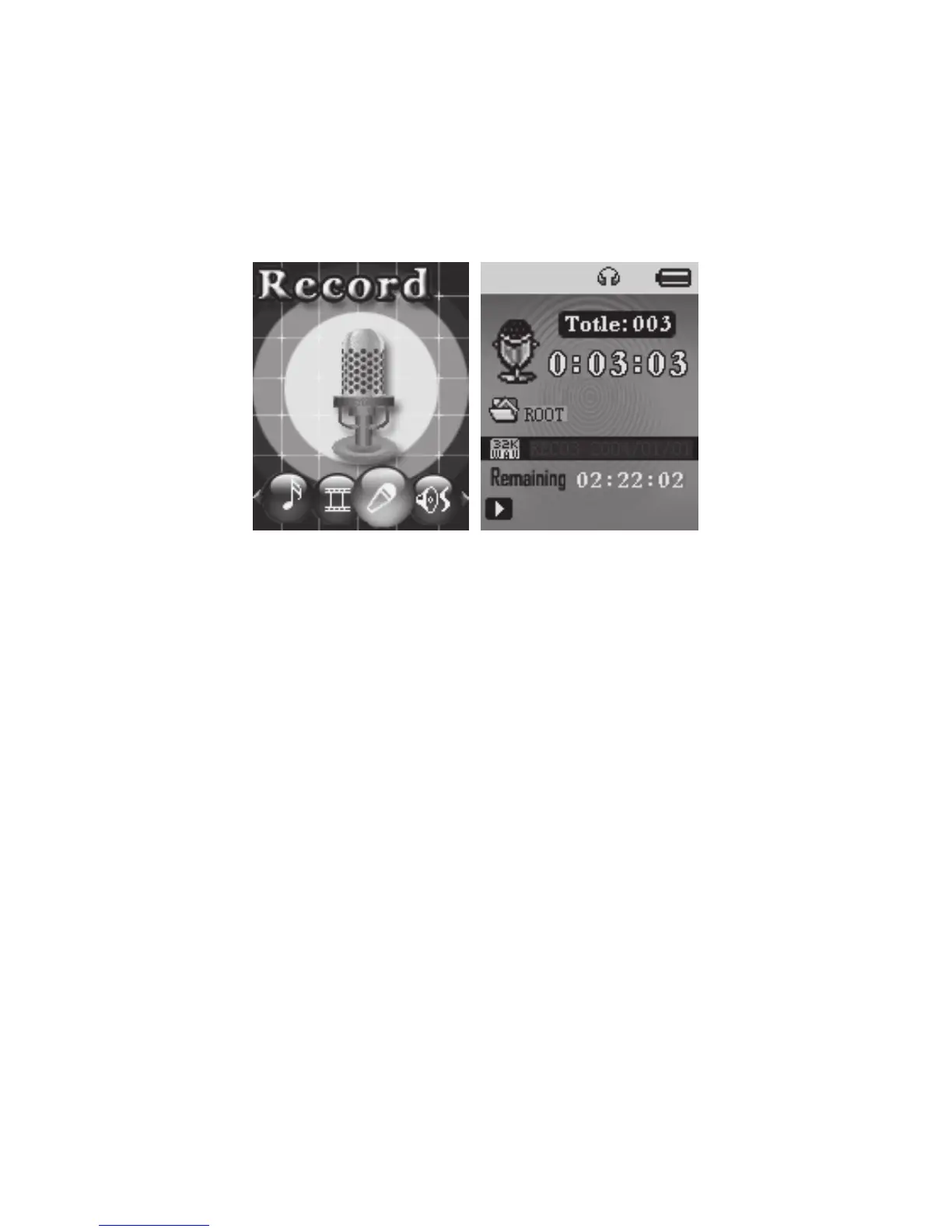 3. Prima MODE para selecionar o Modo Gravação, o ecrã será