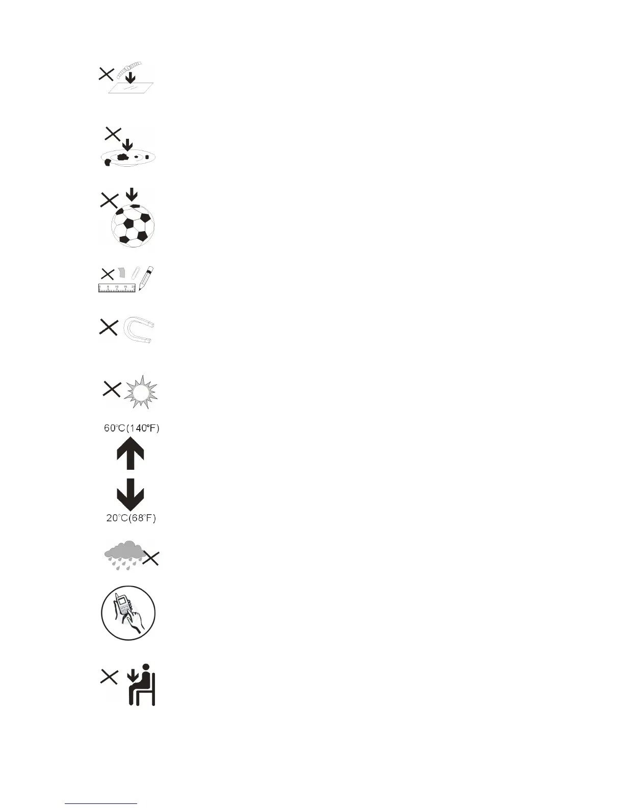 1.DONOTplaceobjectsontopofthedevice,asobjectsmayscratchthe