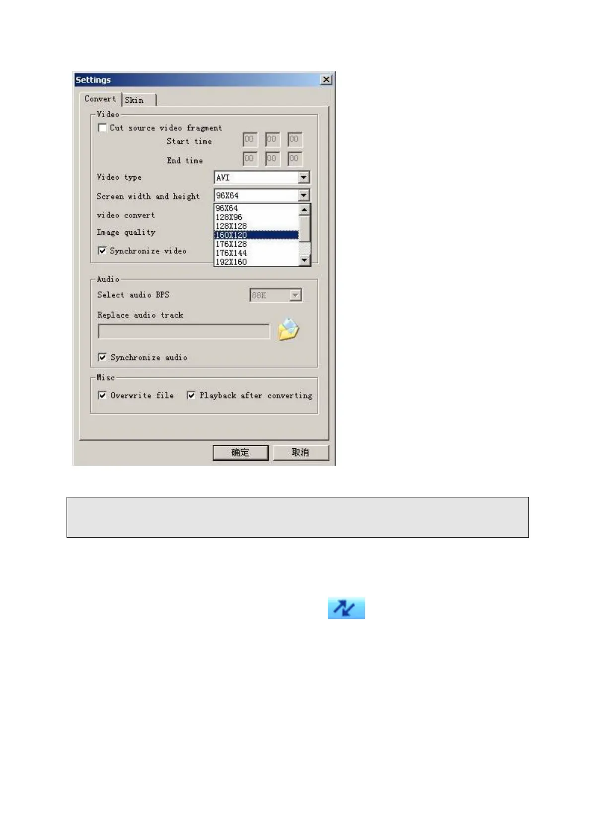 Nota: Selecione sempre “160 x 120”, visto ser a resolução que é compatível com esta
