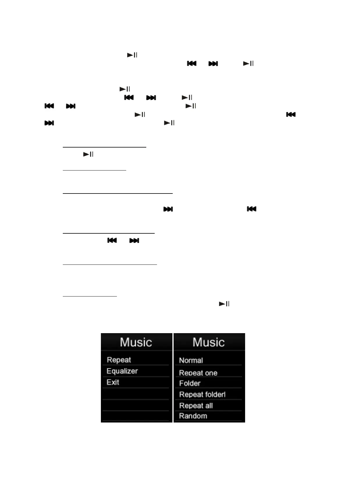 Desde la pantalla “modo de reproducción de música”, pulse “