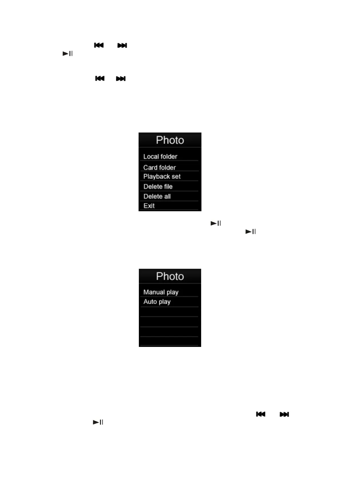 reproductor reproducirá las fotos presentes en la carpeta actualmente seleccionada.