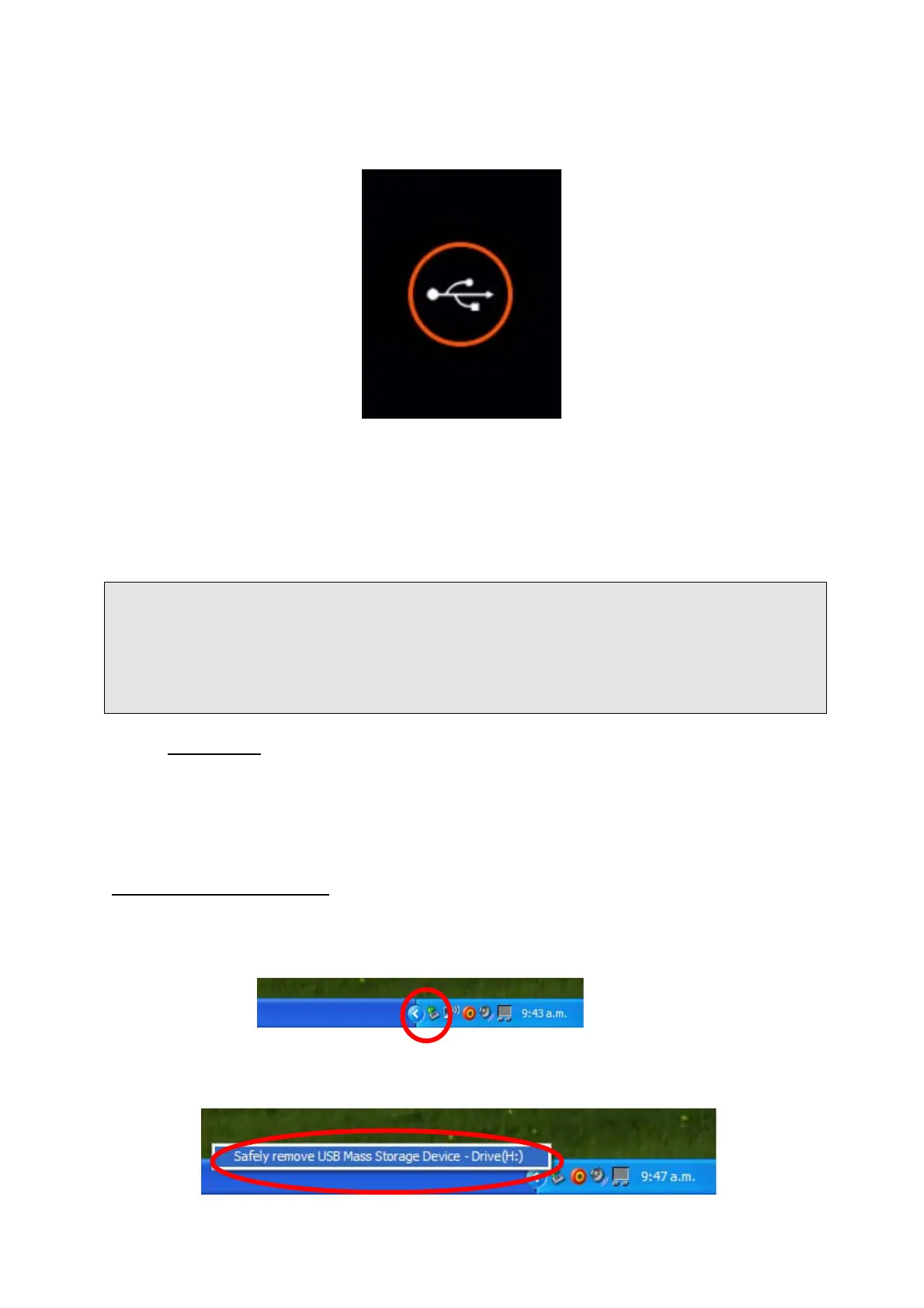 lecteur affichera « Connexion mode USB » avec l’image suivante :