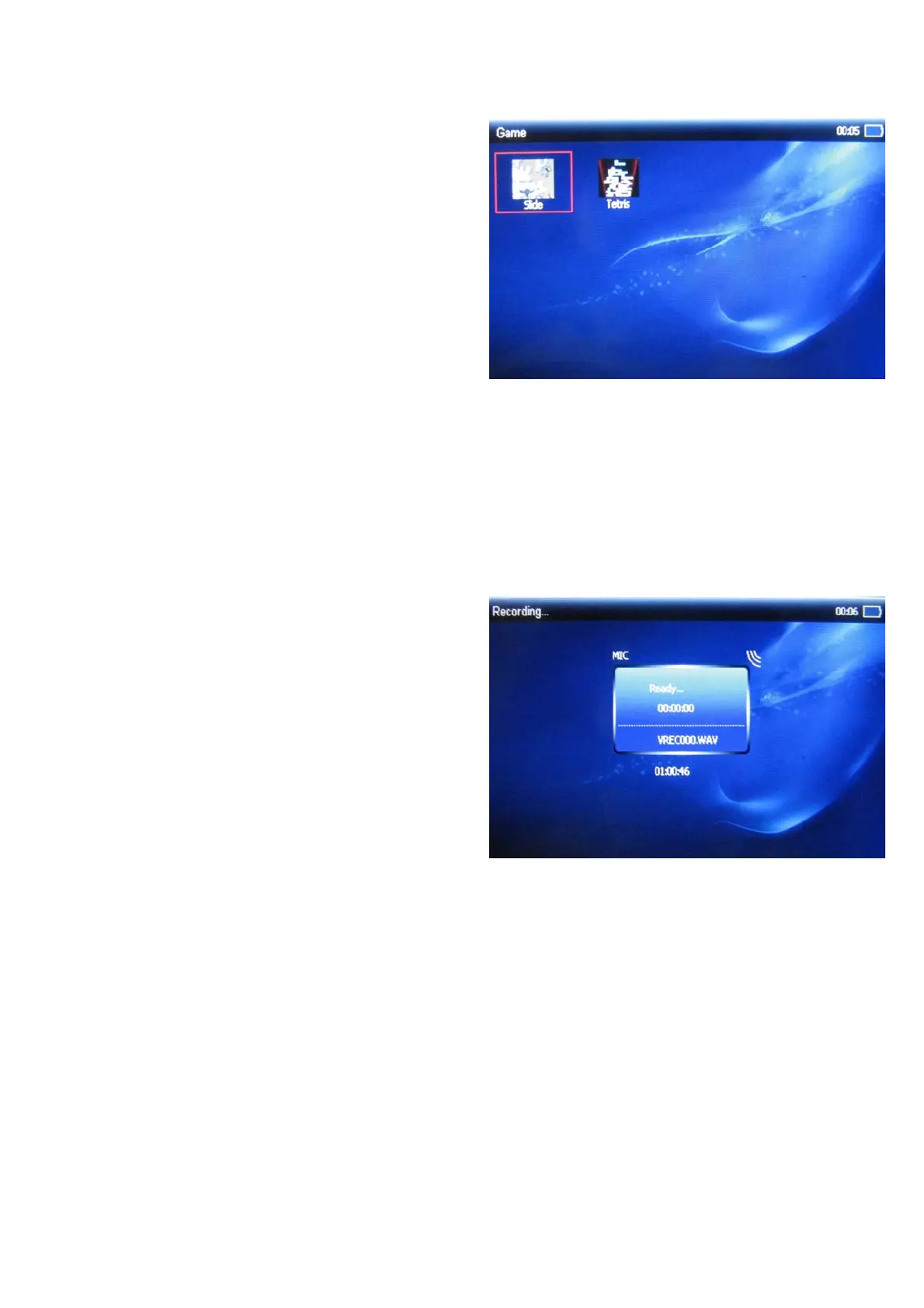 interface(if TF card inserted); press menu key to enter explorer select interface (if TF card not inserted).