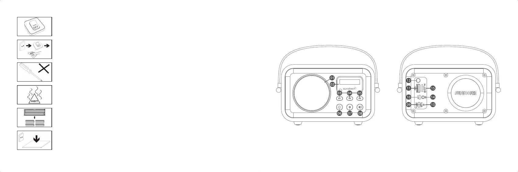 14. Disconnect the device from an electrical outlet and power o before cleaning