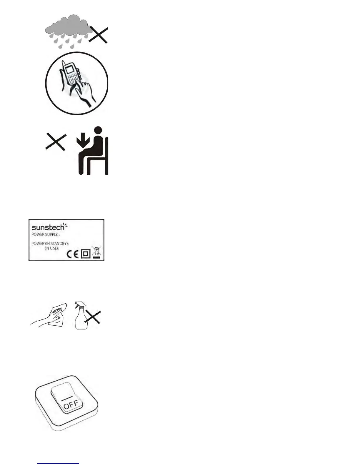 8. NÃO use o aparelho à chuva.