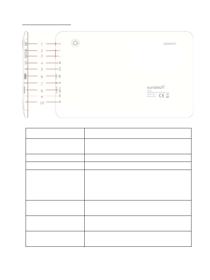 Manter premido para ligar/desligar o tablet; premir