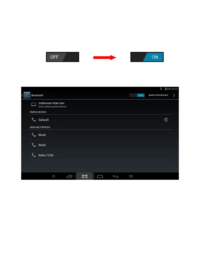 2- Selecione “Bluetooth” e deslize para do estado OFF para