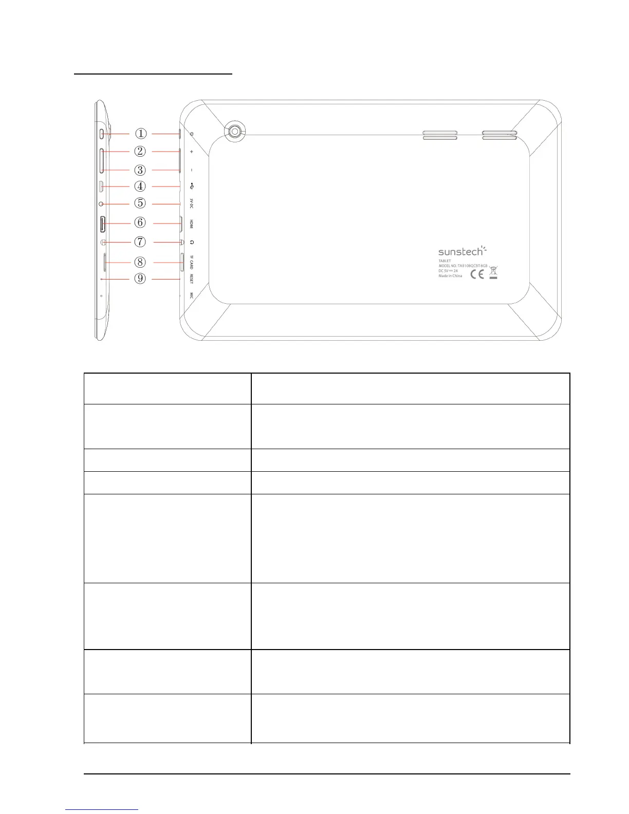 Mantenga pulsado para encender/apagar la tablet; pulse