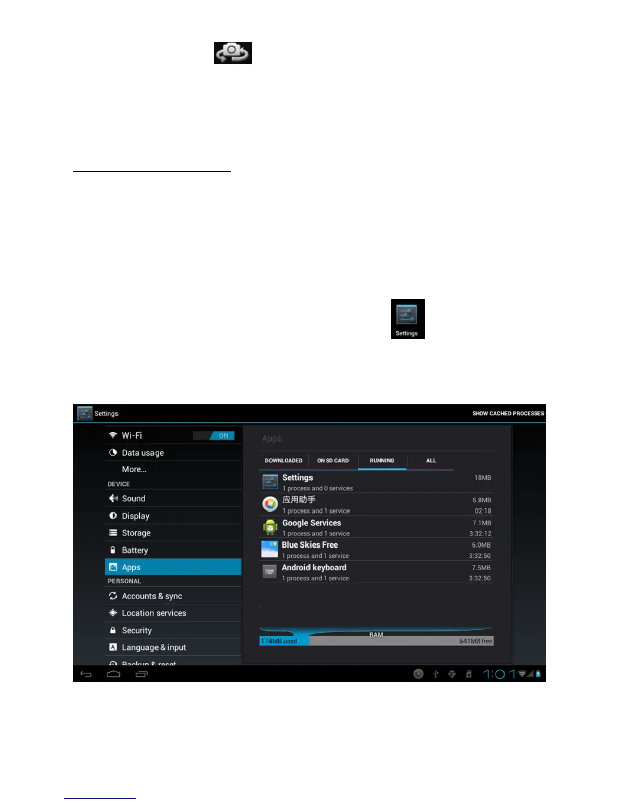 Sélectionnez « Application → services en cours » et l'interface s’affiche