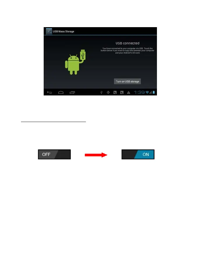 2 Press USB connected on the top bar, then click Turn on USB storage, click