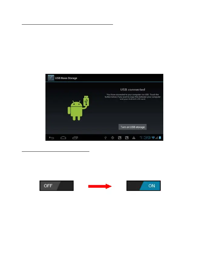 2 Press USB connected on the top bar, then click Turn on USB storage, click