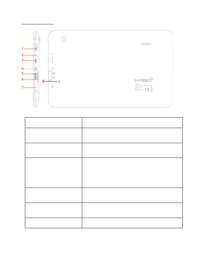 1--Power Keep pressed to turn on/off the tablet; shortly