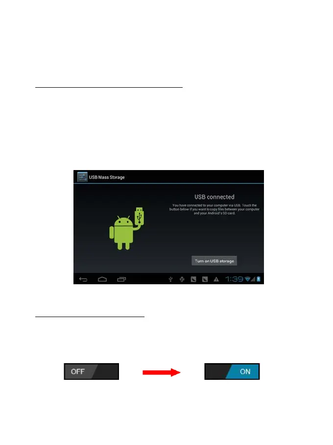 2 Press USB connected on the top bar, then click Turn on USB storage, click