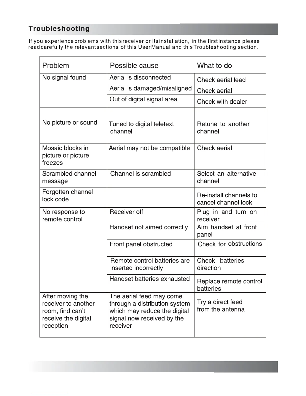 Sunstech TLE9 - Troubleshooting; Signal and Picture;Sound Issues; Channel and Remote Control Problems