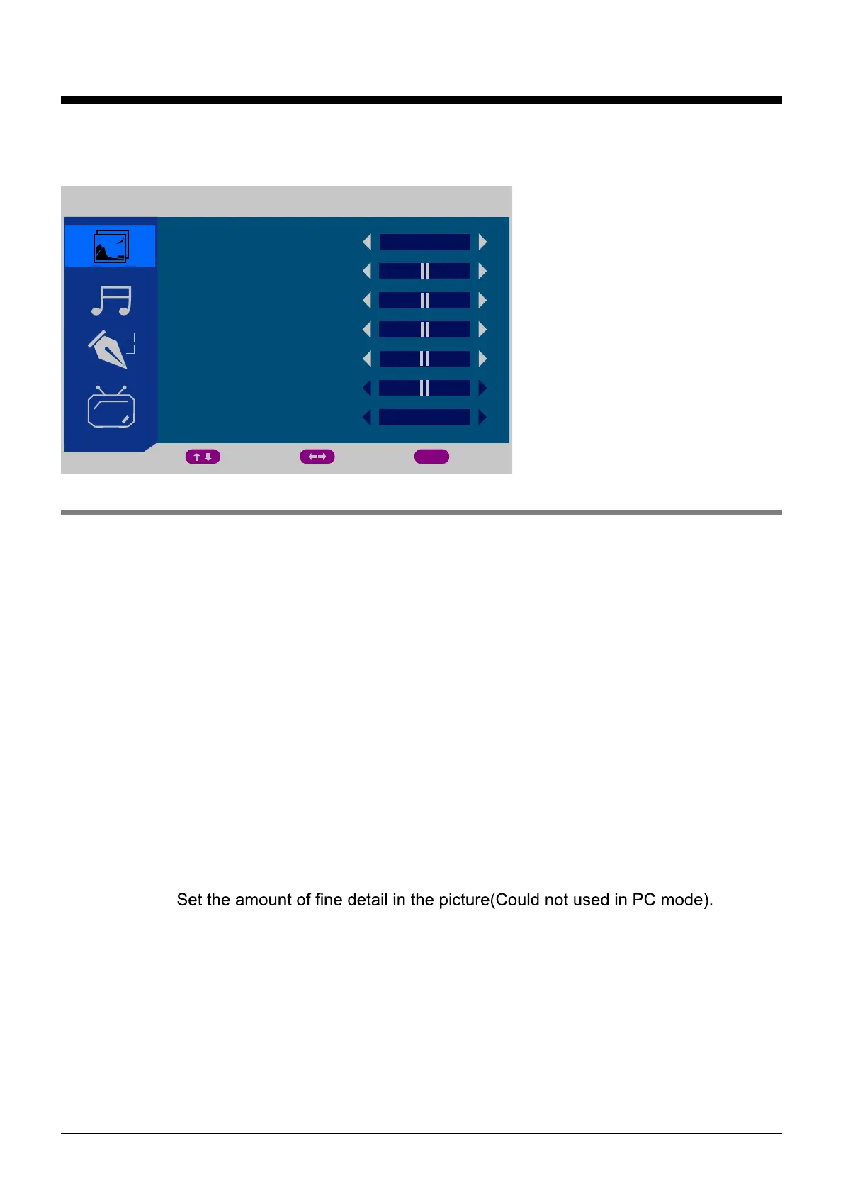 1. PICTURE menu(TV mode for example)