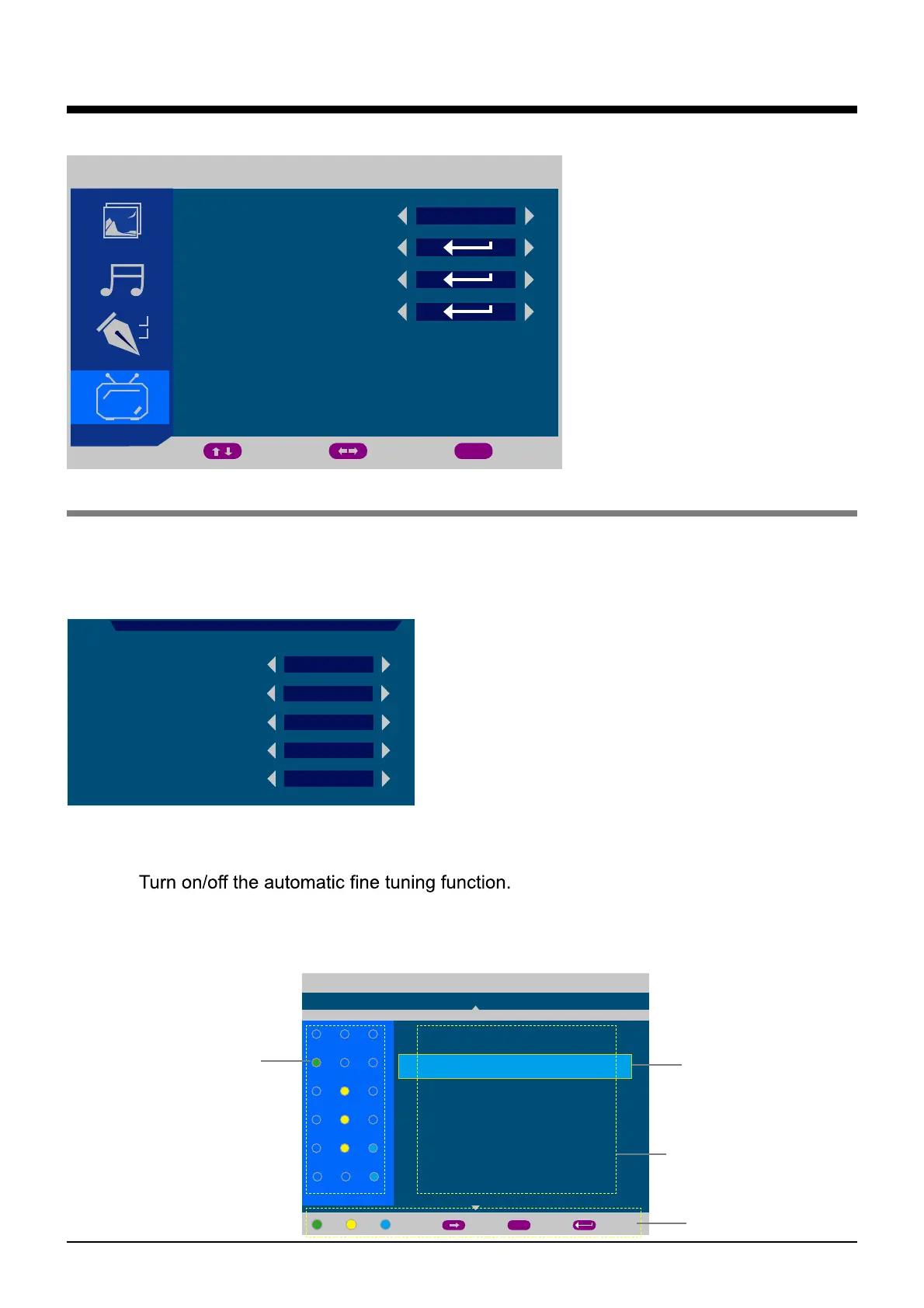 MANUAL TUNING: Enter the MANUAL TUNING menu by pressing > button on the item.