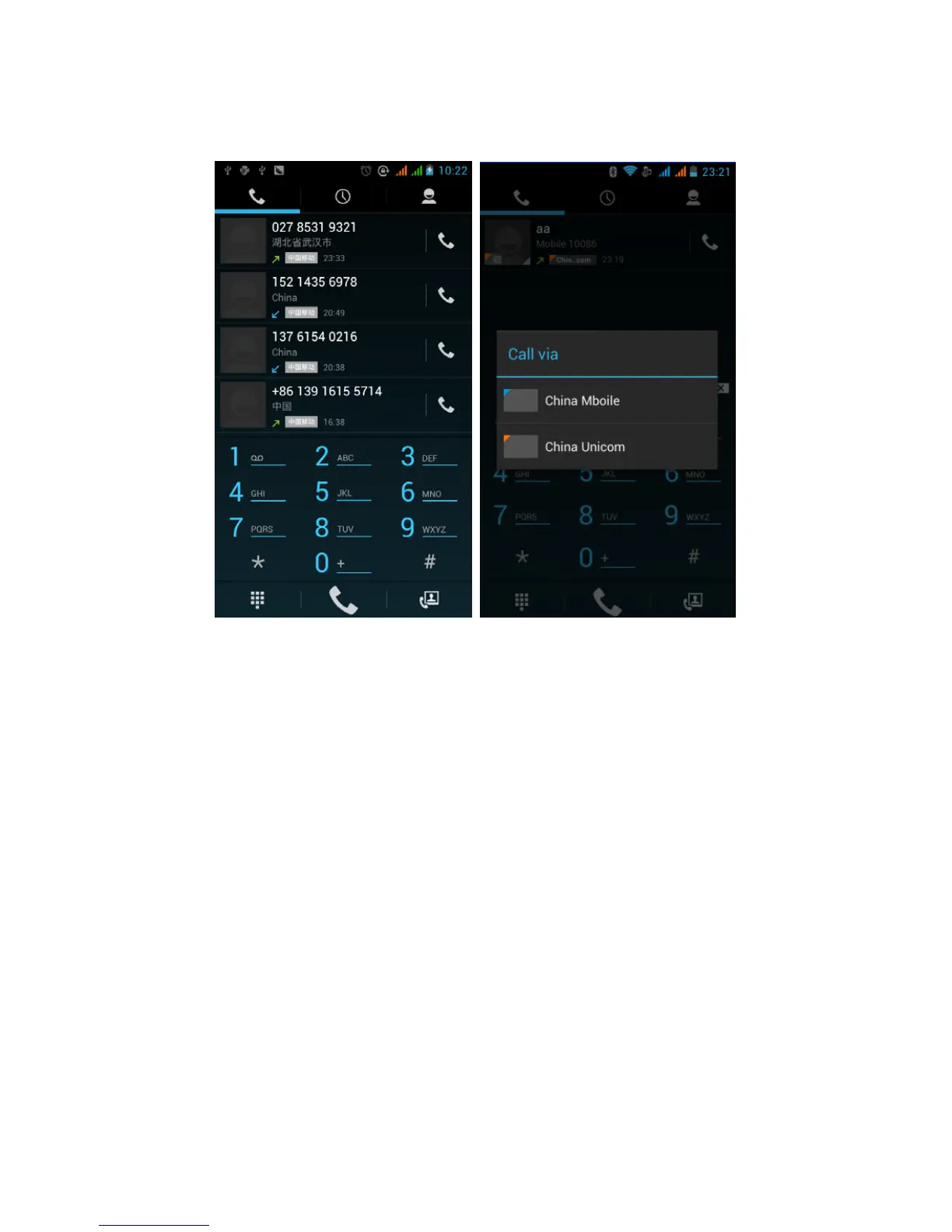 Open application’s main menu>dial. You could choose SIM1 or SIM2