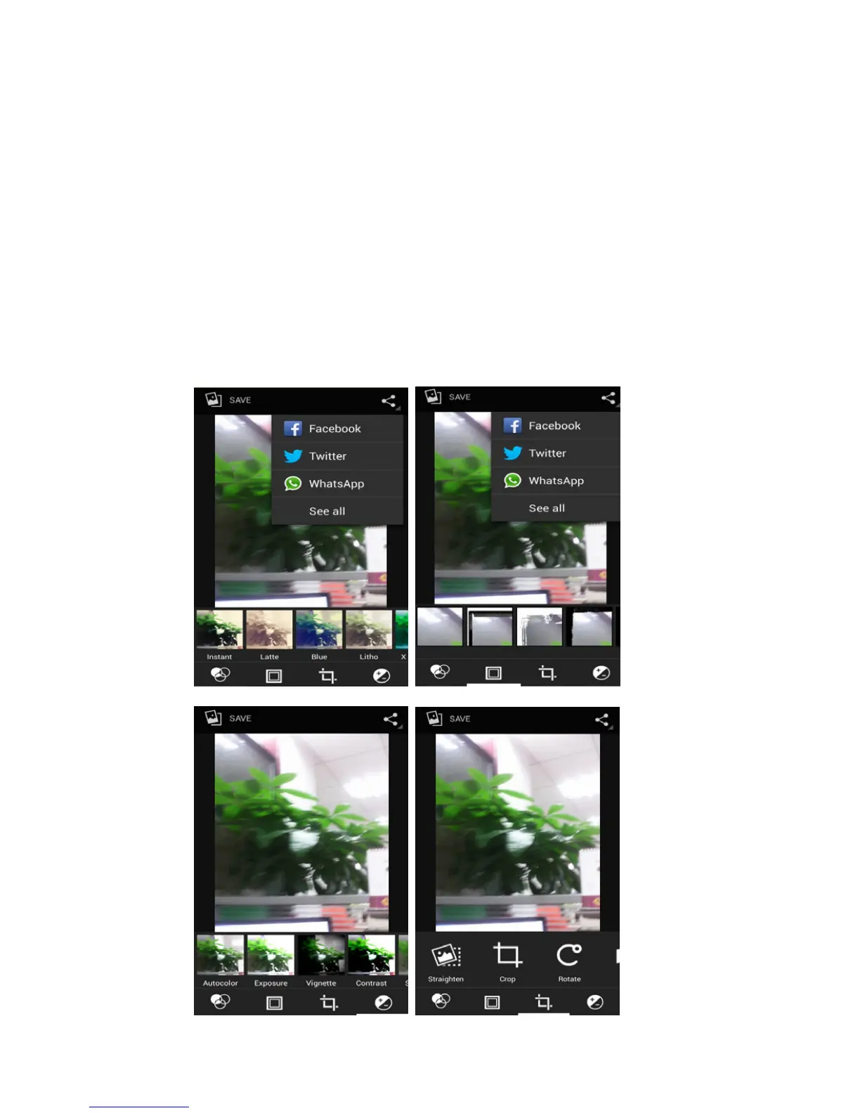c. Effets de couleurs : Saturation chaude, noir et blanc, sépia,