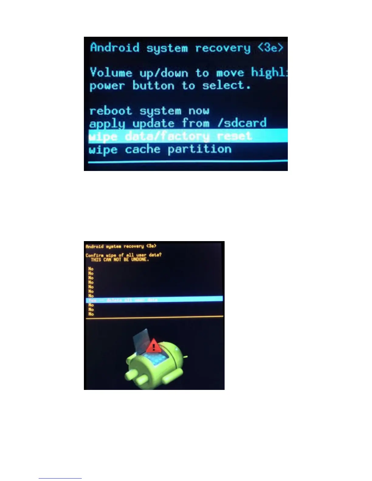 2-Appuyez sur la touche "VOL -" et sélectionner " wipe data /