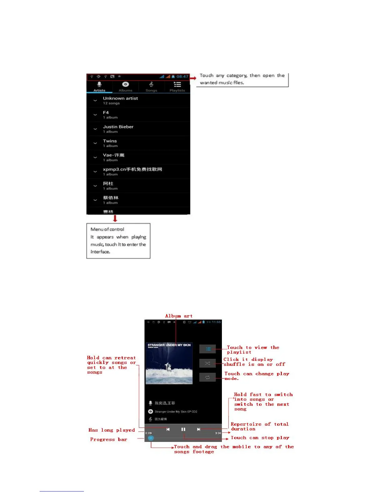• Dicas: Você pode reproduzir todas as músicas na interface de mídia