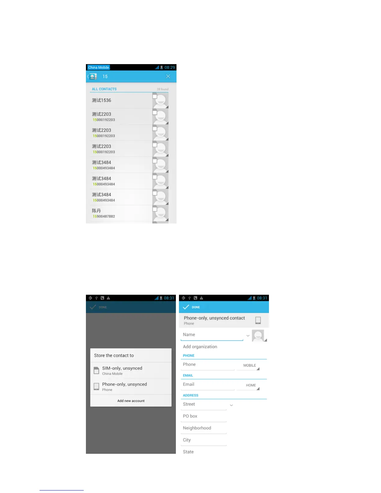 Seleccione guardar contactos en el teléfono o una tarjeta SIM,