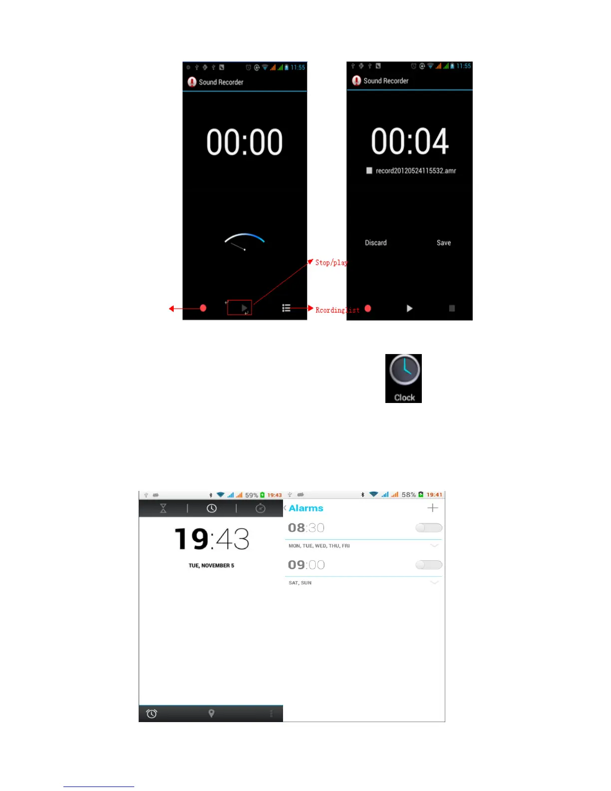 hora en blanco con negro, excepto la alarma. Esta vez el modo de