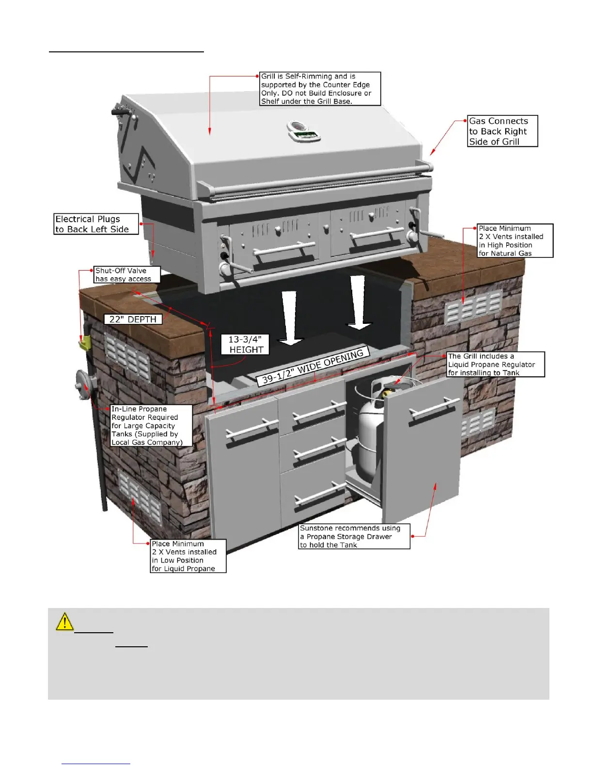 NOTICE: All Gas Lines for either Liquid Propane or Natural Gas should be installed by a Licensed