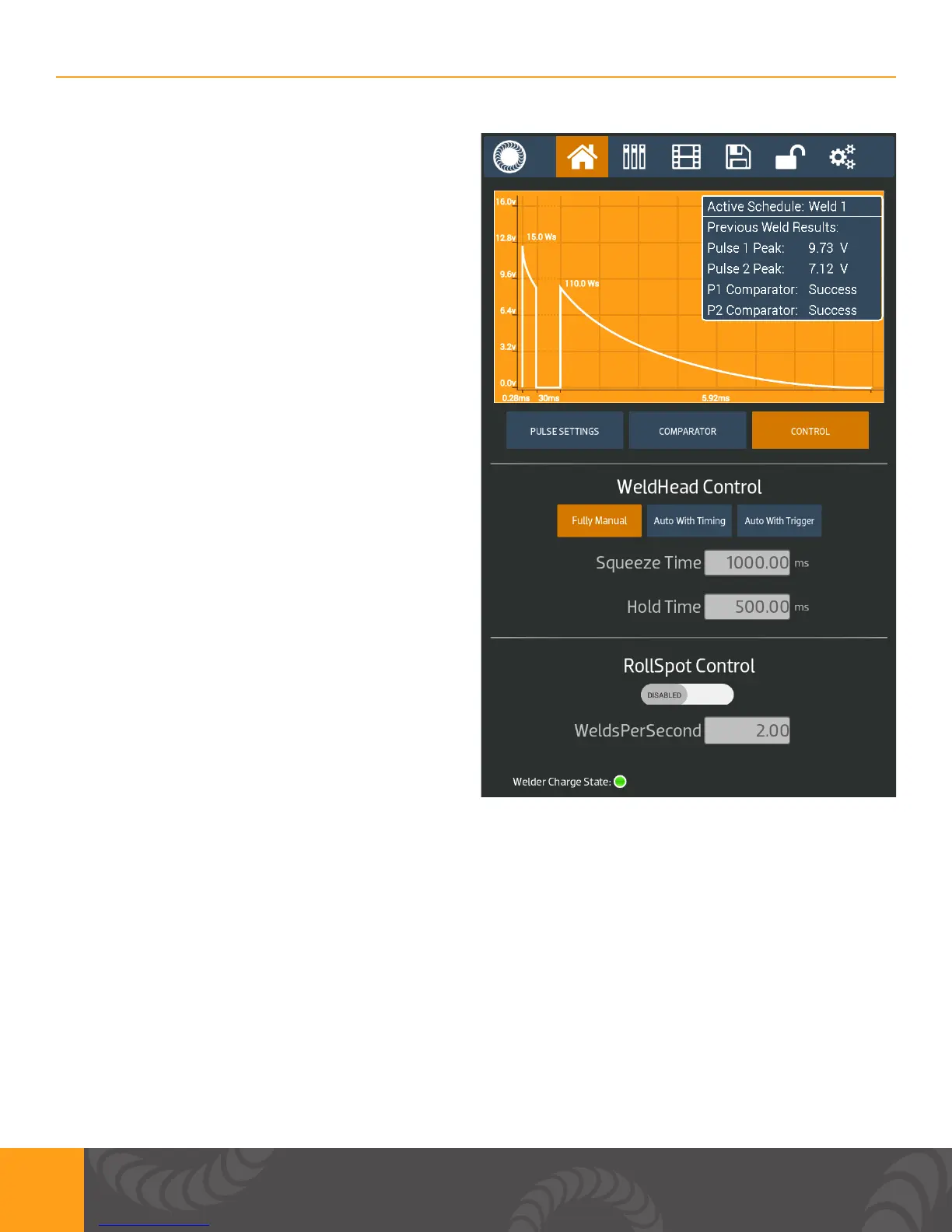 higher powers, charge times will be longer and will affect the weld per second rate. Comparator