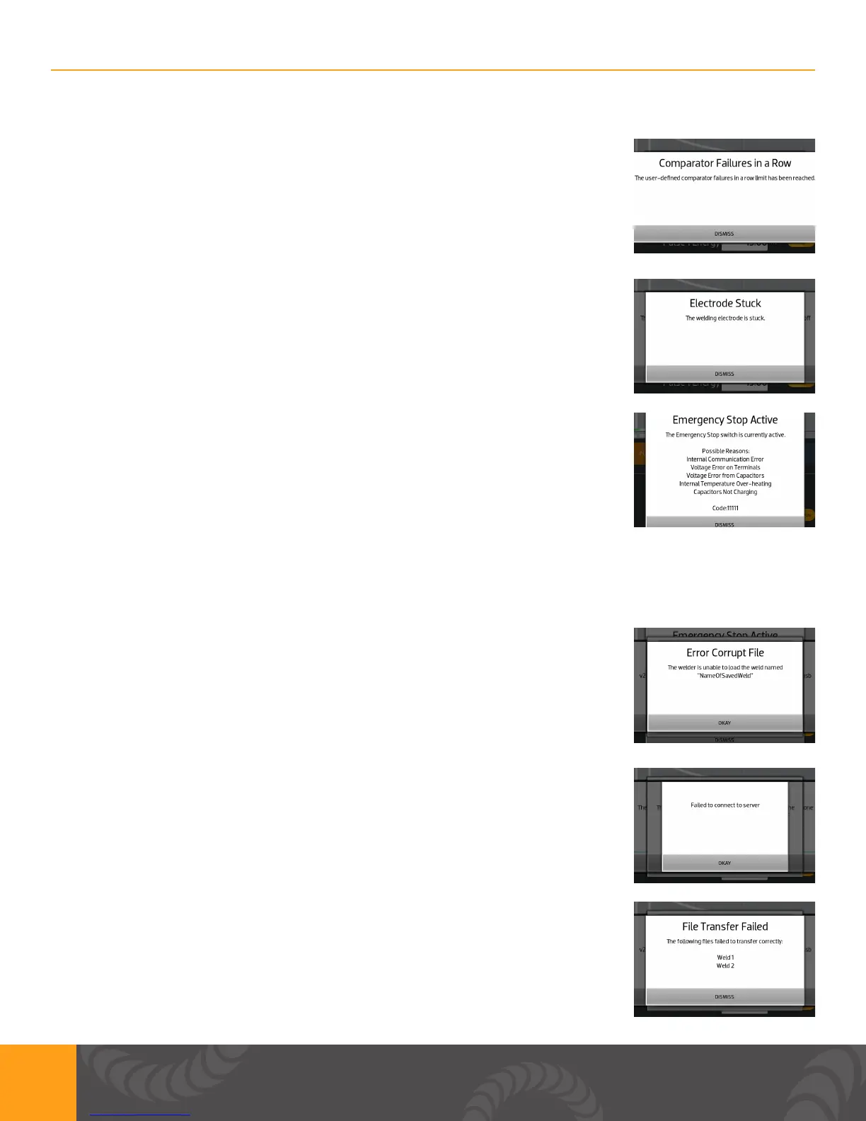 pop up can include: internal communication error, voltage error on terminals,