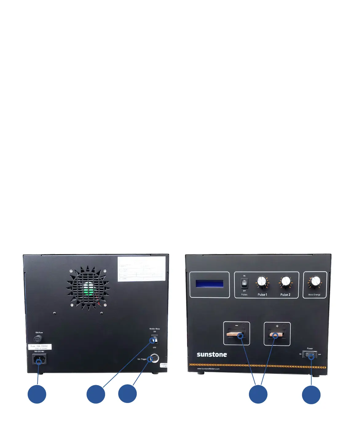 Figure 6.1. Back and Front panels of the Sunstone CDDP welder.
