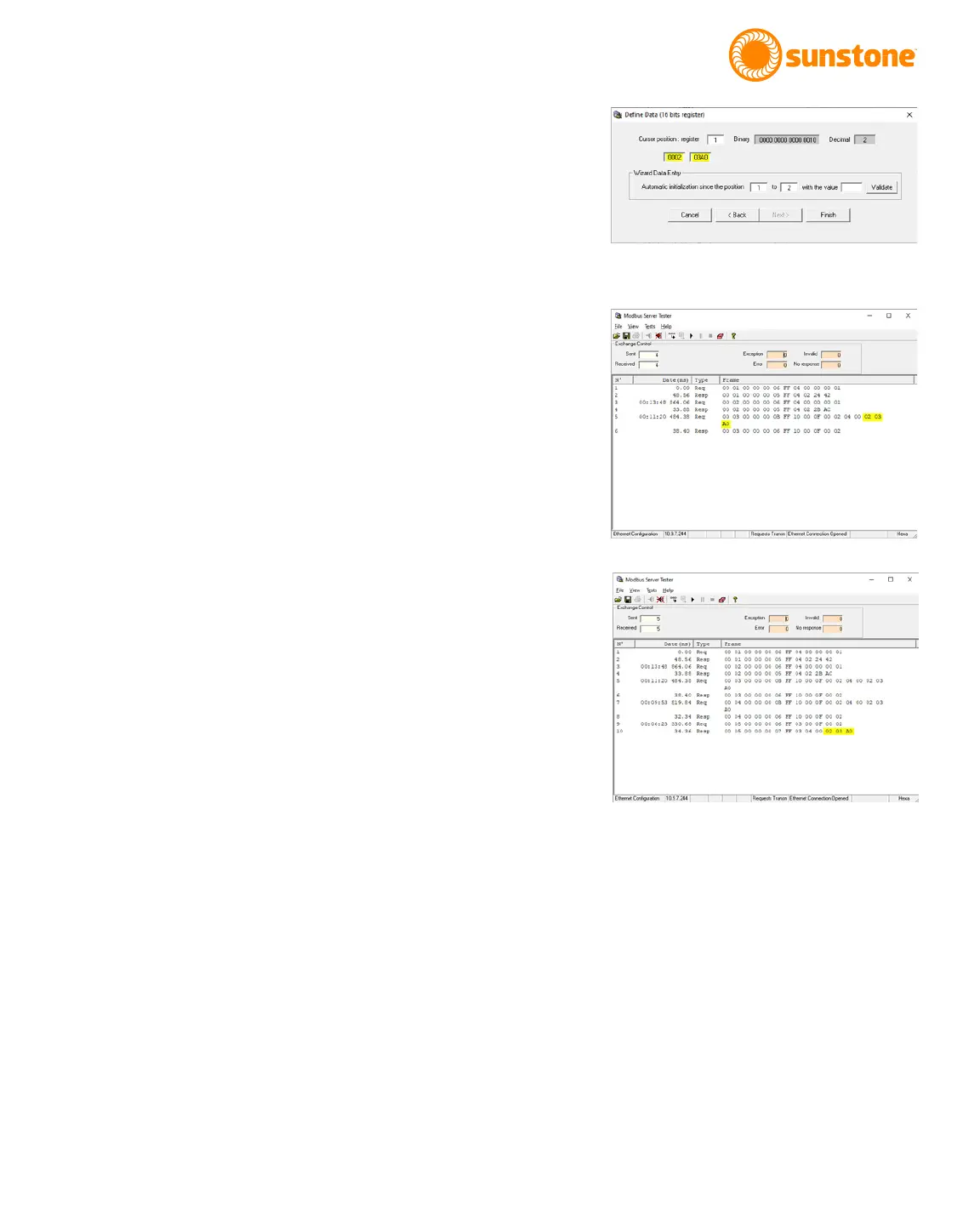 Finish. The Modbus Server Tester output window