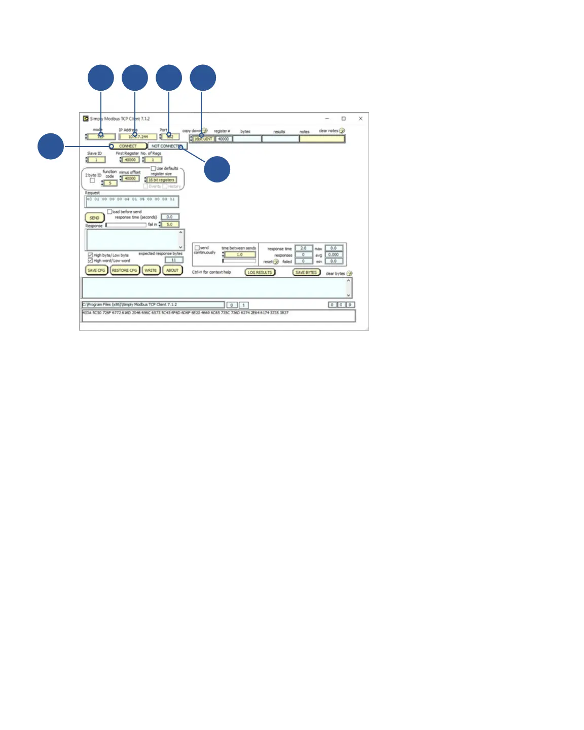 Modbus, which can be downloaded at https://www.simplymodbus.ca/TCPclient.htm. The free edition will allow