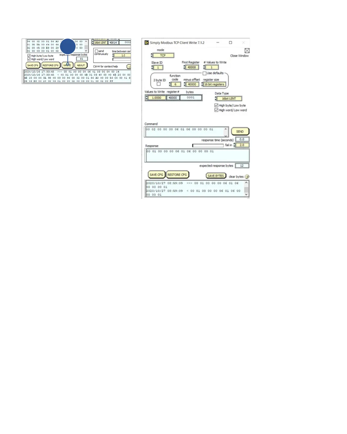 If you change the values to write to 0.0000 and click on the Send button, the response ends in 00 and the re-