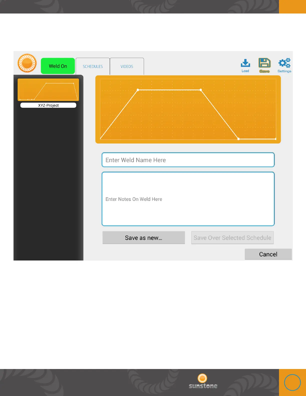 Touch the Save Button to create a custom weld parameter. is feature will save all the current
