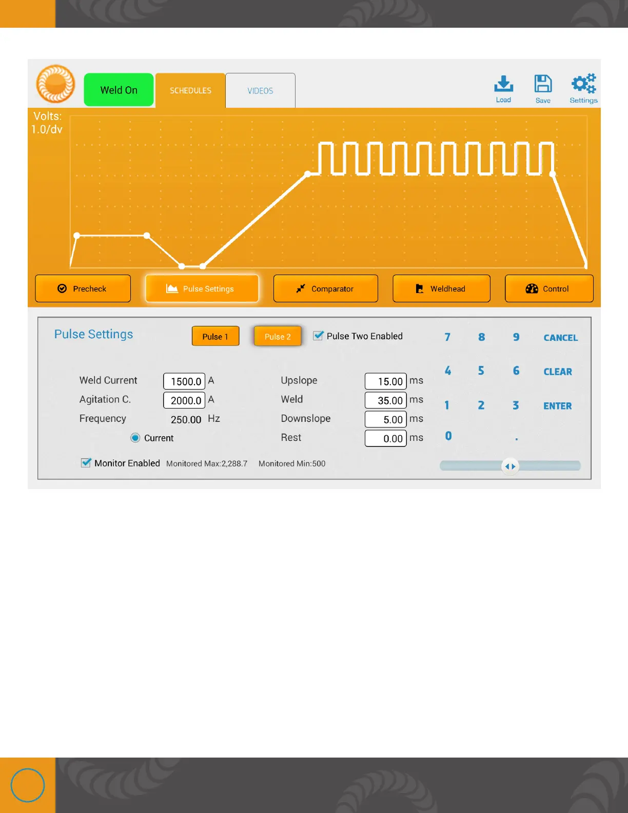 • Pulse 1 and Pulse 2 Buttons - When the Pulse 1 button is selected the weld parameters