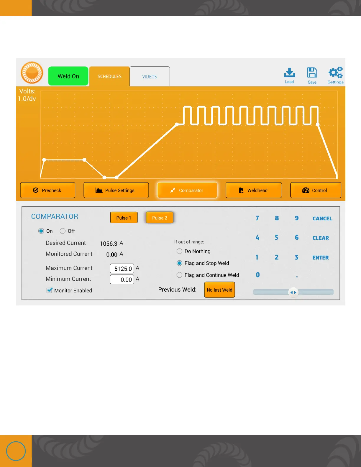 power) that was achieved on the previous weld. The number will be 0 if the comparator was