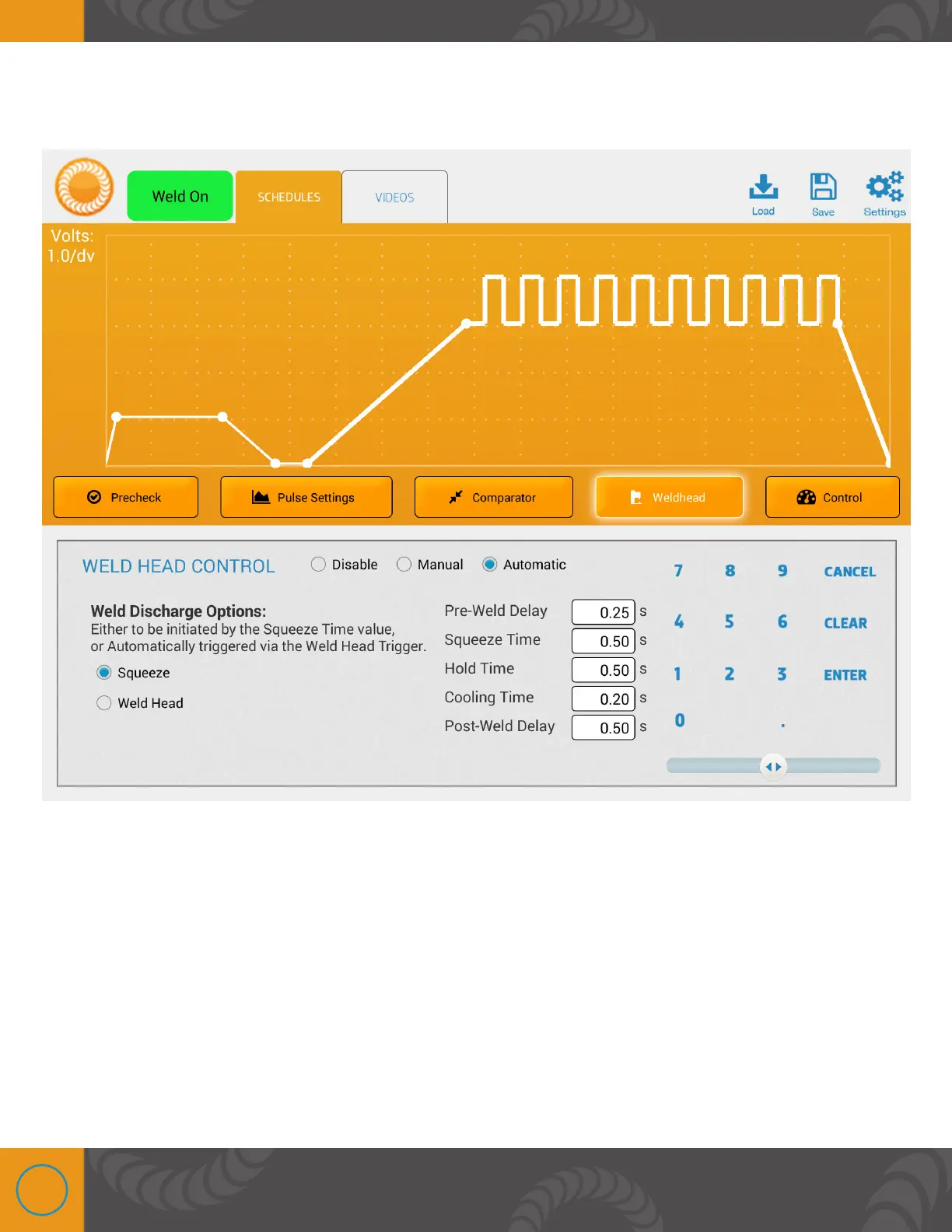 • Squeeze - The Weld will be initiated after the time value in the “Squeeze Time” box