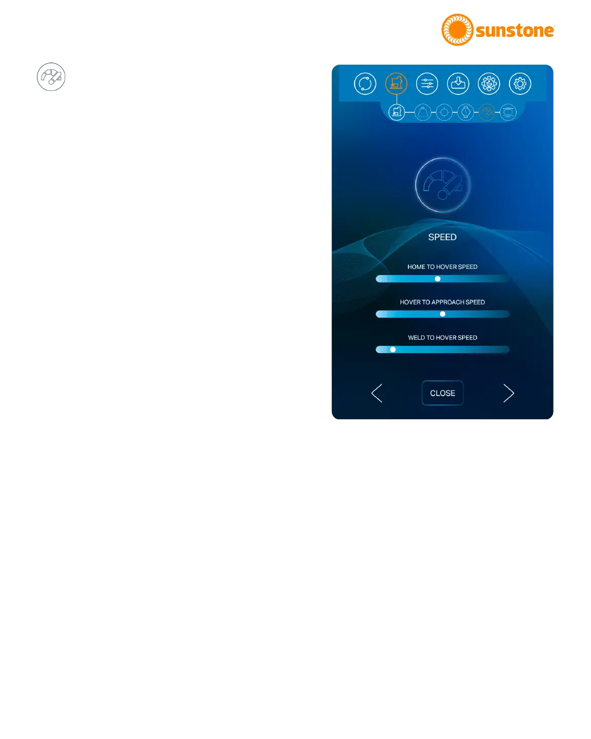 the weld via three dierent sliders. Speeds can be set