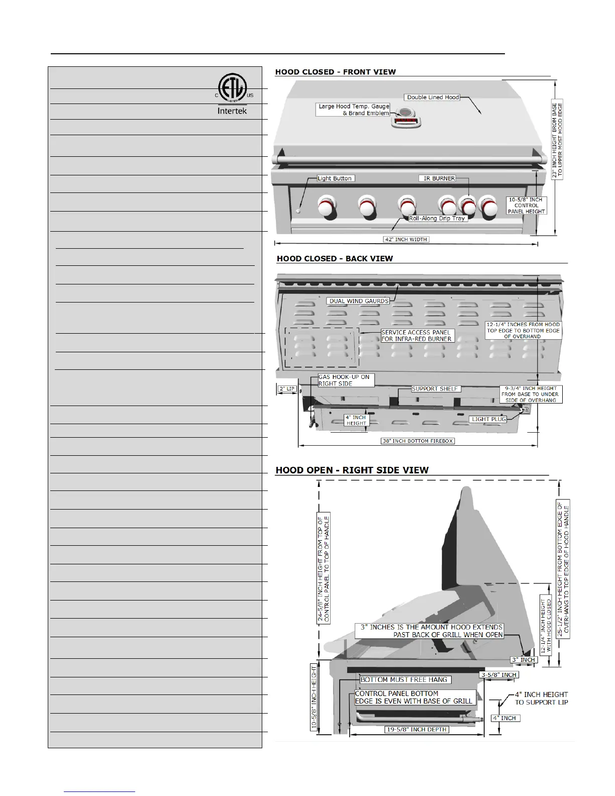 SPECIFICATIONS Ruby 42” 5 Burner IR - Pro Sear Product Overview