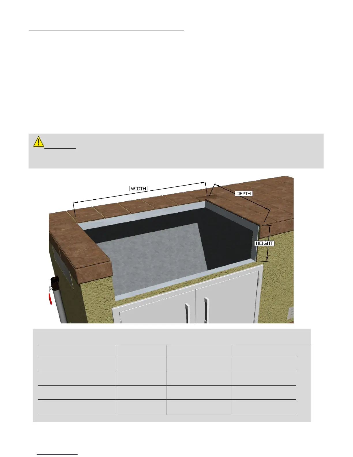 WARNING: Never build shelf or enclose interior space under the BBQ Cut-Out. The Ruby Grill is